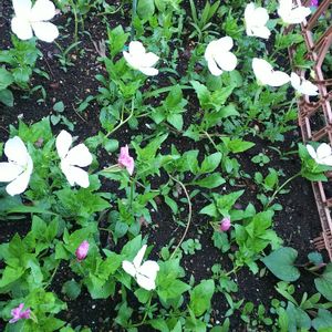 白い月見草が大好きです😃💕 この写真は去年のものですが、こぼれ種でたくさん芽が出たので月見草専用の花壇を作ってあげました😃👋😆🎶✨
