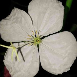白い月見草、4つ目のお花が咲きました。🥰🤍💗 月も撮ろうと思いましたが、私のスマホでは、キレイに撮れません。😩 今回は、フラッシュなしの設定にして、自然の光に照らされたお花を撮ろうと思います。😊 風に揺れて、ブレてしまい、撮り直しばかりです。🤣🤣