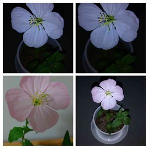 白い花びらが、今朝午前3時には、ピンク色に変わっていました。🤍💗上2つと右下は、ベランダで撮りました。左下は、部屋に入れて撮りました。🧐🥱