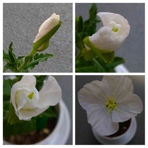 白い月見草、夕方6時半ごろから、約5分ごとに撮りました。😳 右上、右中、左下、下中、右下、そして、左上の順です。キレイに咲きました。🤍🤍感激です。😄🥰