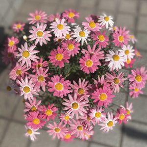 マーガレットの花が綺麗に咲きました 白やピンクの花びらが散りばめられてます ストロベリーホイップの名前通りですねー