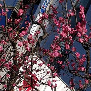 こんばんは🤗 新横浜の駅前に紅梅が五本程有ります💕🎶 満開でした💕🤗