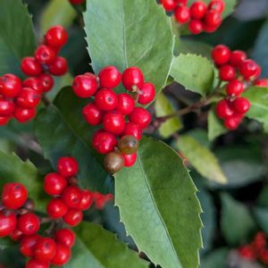4:00近くなるともう暗くなりそう 帰路いそぐ顔に アッ冷たい ナニこれ 今の雨? 見上げると空はまだ青が残ってるのにね〜と 知らない人と交わしてしまった! 夕暮れせまり鬼瓦なみたいな落葉を発見 急ぎ足に選り好みし集めてしまった 庭の千両は今年は咲いて去年は 鳥さんに食べられてしまった 今年は万両の赤も白も申し訳ない程度にしか咲いてない 友に作った洋服の残り生地で無理やりできたベストは🍂と似てる