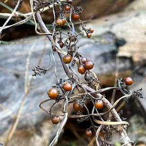 とても見落としがちなお花でしたが何もない時期には果実が目立っていました ※アカネ科アカネ属 根は茜色をしており草木染めの原料になるそうです 黒く熟した果実の腹面に楕円形の穴があると以前調べた時に確認してみたいと思っていたのにすっかり忘れてしまいました 12月19日撮影