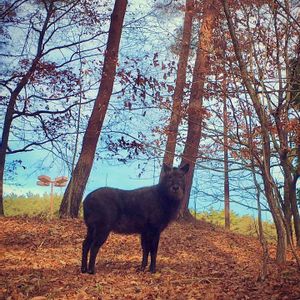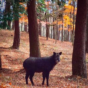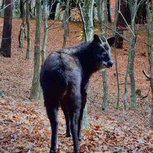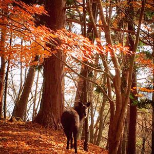 紅葉とカモシカ 僕に興味がなくなったのか、徐々にこちらを見る回数が減り、落ち葉をかき分けたり、木の匂いを嗅いだり、おしっこまで始めちゃうし💦💦