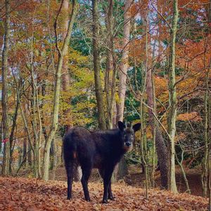 紅葉とカモシカ〜see you〜 去り際に、挨拶のつもりか、こちらを振り返ったカモシカ君😊 じゃあね!🤗