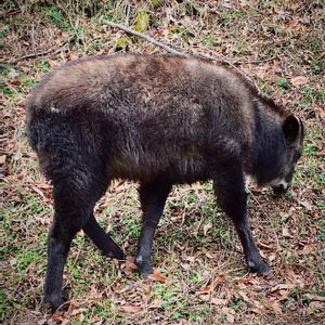 草を食べるカモシカ こんばんは😃 昼、カモシカに会いました。車道のすぐ脇で草を食べているので、車の窓を開けてパシャリ!🤳 全然動じず、草をモシャモシャ😑 おーい、こっち向け!