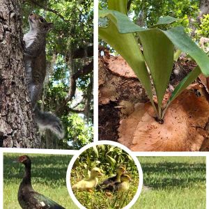 ビカクシダを見ていたら、🐿を発見。 そこへDomestic Muscovy duck(野バリケン)親子が賑やかに横切って行きました🦆🐤🐧🐤🐧