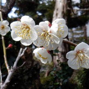 北風と白梅の空 香り立つのは もう少し先 足下に先程の梅