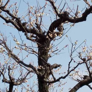 近所の梅林にやっと白梅が咲き始めました。😊👍🎶 我が家の紅梅はまだ硬い蕾で、 開花は先です。😥