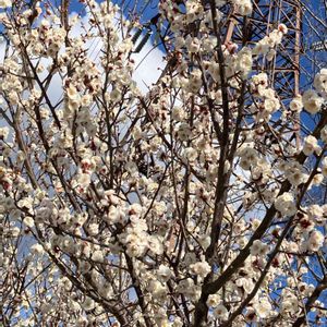ワクチン注射💉の帰り、青天のもと桜通りにて「白梅」をパチリ!📸💙💮😊😄😷🌞✌️