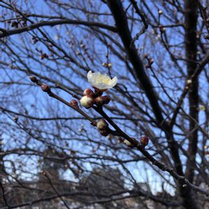 今日は空気は冷たいのですが、日差しは明るくて春を思わせてくれました。 もう満開に近く咲いている梅も見かけるのですが、写真のこの木はこれから。 一つ二つ、綻んでいました。横に控える蕾もかわいくて、思わず写真を撮りました。