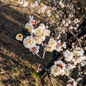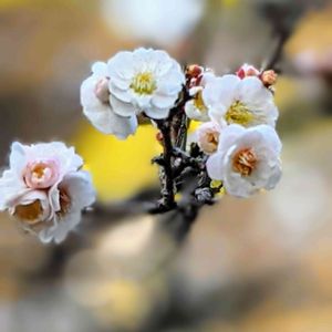 今日のお花「梅」🌸 先日、投稿したのが紅梅なので、 「白梅」の良さげな📸をチョイスしましたよ🙂 花言葉は「高潔」「忍耐」「忠実」 ☆忍耐は大事〜と感じる今日この頃です😱 今回も鼻は詰まって無いので(笑)、香りを嗅いできましたが… (私感ですが)「紅梅」色の濃い花の方が、香りが強い様に感じました。