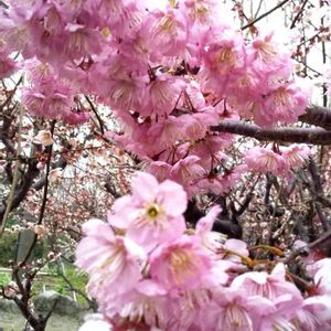今日のお花 🌱ウメ🌱 2019年2月27日撮影 普光寺にて(福岡県大牟田市) ㊤ 臥龍梅(県指定天然記念物) 龍が臥せたような樹形の八重咲きの紅梅で樹齢約450年と言われています 一本の木から横に24mも繋がっています ㊦垂れ梅 坂道に20本もあります お天気が今一でした