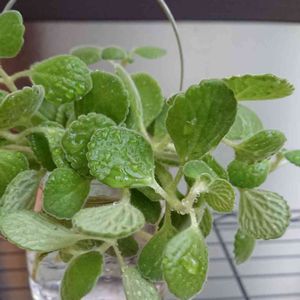 ホームセンター巡り その3 アロマティカス(プレクトランサス属) 多肉とハーブ🌿の中間の様な植物で、 サラダやハーブティー☕️に、使えるらしい。 増やして、試してみたい😁 ミントの香りがして、虫除けになるかも? ✂️挿し穂は、切断面が水に浸かっていた方が発根しやすいらしいので、適当な浅めの容器に水を入れ2枚テープを平行に貼り、隙間に茎を入れてます。 葉挿しは、❌らしいです😭