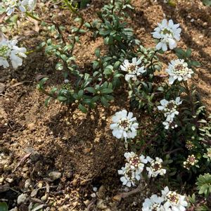 宿根イベリス 見切り品を見つけ、 もう一株お迎えして地植え 徒長気味?? 切り戻した方がいいのかな?