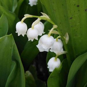 今日のお花 🌼。・゚ スズラン💚♡ みどりの葉っぱの中から純白の顔を覗かせ幸せオーラいっぱい 純白のヴェディングドレスにすずらんのブーケ❥ᶫᵒᵛᵉ♡💚 似合いますね〜。・゚♡💚