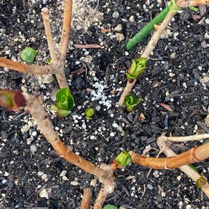 紫陽花の芽吹き😊 白い紫陽花今年も咲いてくれるかな?
