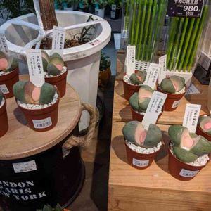 令和の桃太郎 コノフィツム プレイオス ピロス 初めて見た時はえっえっと💬思っちゃいました。 多肉???触らせてもらったら柔らかくて本物👀😳🤭 でもスゴ〜くお高いので手が出ませんでした😵 今日、HCで最初に見た時よりだいぶお買い得だったので、お迎えしちゃいました〜😅💕 でも育て方難しそう〜😅