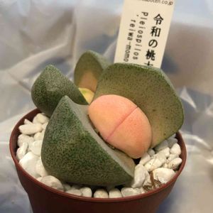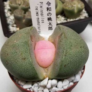 桃🍑のような見た目が愛らしい プレイオスピロス 令和の桃太郎です! 緑の葉🌿の間からピンクの新芽がでてくる 桃🍑のようなかわいい冬型メセンです。♡ まるまるとした葉が愛嬌たっぷりです!
