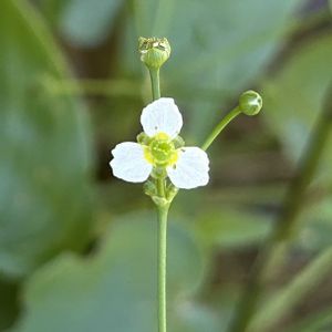 今日のお花♪ ヘラオモダカ(箆面高) オモダカ科サジオモダカ属の多年草 花期:7〜10月 生育環境: 水田、沼、湿地 分布:日本全土 ①花は直径約8㍉ 雄蕊6個、雌蕊が多数 花弁、萼片は3個 ②若い果実 多数の果実が集まる集合果です 集合果の直径約4㍉ ⑤根生するヘラ形の葉 株の基部から花茎が出ていました 地元のこの場所で子供たちがイネを育てています。 🐗避けに電気柵が設置されている、 その中で育つヘラオモダカです。 電気柵に触れないように、そして草が多くて葉っぱが見つからず苦労しましたがやっと見つかり撮影出来ました♪ 埼玉県では準絶滅危惧のようです。 植物園で過去に見たのはサジオモダカでした。 ヘラオモダカが地元の田圃にあったとは! 大切にしていきたい植物です。 ※ 似た花サジオモダカの葉身の基部は円形で葉柄との境は明瞭ですが、 このヘラオモダカの葉身の基部は次第に細くなり葉柄との境は不明瞭です。