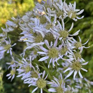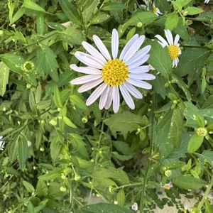 今日のお花♪ シオン(紫苑) 別名:ニワシオン キク科の多年草 分布:中国地方、九州の草地 ・茎はやや角張り、茎も葉と共にざ らつきます ・花は淡紫色で径3〜3.5㌢くらい ・茎は直立します 草丈は草丈は高く、1.5〜2m 散策中、畑?花壇?のような所で見つけました♫ これは植栽です。