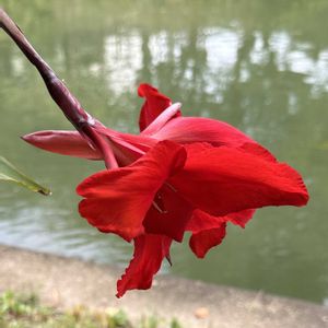 いつもの散歩道で🚶🌿🌿 今日のお花 カンナ科の"ダンドク" 多年草 鮮やかな朱赤🟥が 美しいです♪