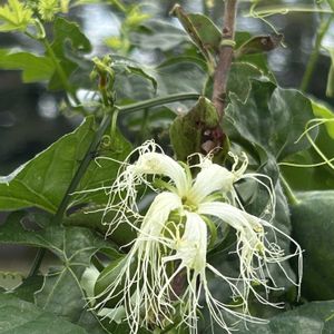 今日のお花がカラスウリという事で 今回はキカラスウリです。 キカラスウリ(黄烏瓜) ウリ科の蔓性多年草 分布: 本州、四国、九州 ・カラスウリもキカラスウリも夕方 に花が開くのですが… カラスウリは朝にはしぼんでしま いますが、キカラスウリは日の出 後、暫く咲いています。 ・カラスウリの実は赤く熟すのに対 し、キカラスウリはやや大きく黄 色くなる ・カラスウリの葉は表面に毛が多 く、触るとふわふわでざらざらし た感じがするのに対しキカラスウ リの葉は表面に毛が少なく、テカ テカしていて、少しザラザラする ・キカラスウリは雌雄異株ですが、 この写真の2つの花はどちらも雌 花でしたね! 子房が膨らんでいます。 キカラスウリの果実は見たことあったけど、花や葉っぱを見たのは今回初めてでした。 まだあおい果実も沢山生っていました。葉っぱも可愛かったです。 🤳2025/9/14 ほぼ10:30