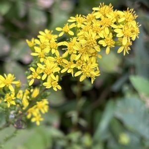 アキノキリンソウ(秋の麒麟草) キク科アキノキリンソウ属の多年草 分布:北海道〜九州 花期:8〜11月 アキノキリンソウは花から蜜を出し、多くの昆虫がこの蜜を求めて訪れます。特に秋の花が少ない時期に、蜂や蝶の重要な蜜源となっている虫媒花です。 しかし花粉症の原因となる風媒花だと誤解された時もあり、そのため各地で撲滅運動が繰り広げられ、かなり勢力が弱まったようです。 地元のお山麓の水田近くでは黄色い星のような花を沢山付けた株が見られます。 秋の素敵な里山風景です。 📷 2025/10/21