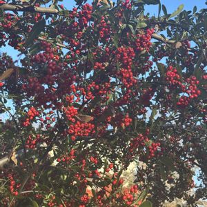 今日のお花"ピラカンサ'' いつもの散歩道に咲いていました🙋🏻♀️🎶 キダチダリアがまだきれいに 咲いていました♪