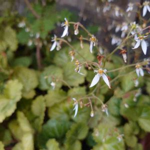 ゆきのした 旬は少し過ぎてしまいましたが ひっそりながらも半日陰で 仲間を増やしてます。
