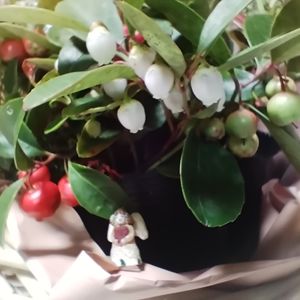 チェッカーベリー 開花期 6~9月 結実期 9~3月 9/16に購入したので、鈴蘭のような白い花、固くて青い実と赤い実を、同時に見ることが出来て、夢のようです🤗✨ 天使👼ちゃんも見に来てくれましたよ💓と言うわけで ショパンさん主催の🏷️エンジェル祭りに参加させて下さい👼 合言葉はズッキユ~ン💘💘💘💘💘