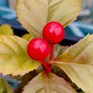 やぶこうじ 真っ赤な まん丸 可愛い〜🥰 実は、偽物でした。😅 一茎に二つの実 仲いいのね🥰 少し焼けますよ☺️