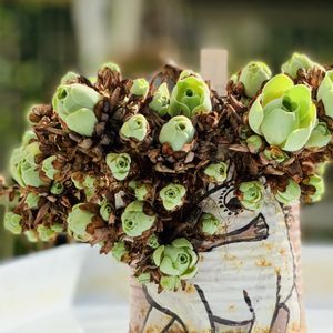 ひらひら多肉 お気に入りだったんだけど 春に成長点から花芽上げちゃって 暫くしたら 子株が両脇からではじめた! 増えたから良し👍にしよう😙