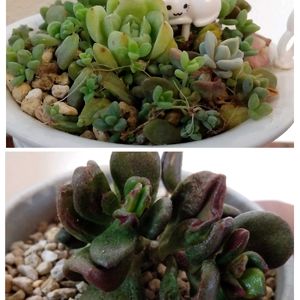 キャオ~ッ ん? 振り返ったところをパシャリ📸 セダムコーラルカーペット 久々の登場です 二年前の今日 初投稿 昨年の2月に赤く色づいたのを投稿してから… ハゲ山となってました💦 見事に復活👍 2枚目 寄せ植え鉢 いただきもの 大事に育ててますよぉ~ 3枚目 半年前に手に入れたばかりの多肉5種をカットして挿してありました 鉢は10円 お安く楽しめてます👛 4枚目 ウィンクレリー 成長具合が嬉しくて ウィンクしちゃう~💕 5枚目 今日の収穫