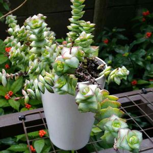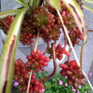 夏ごろに釣り竿の様な花穂が出て🌼が咲きます。庭に有ります。多肉植物はよく似たのが沢山あるので名前わからないまま🙄分かりました七福神でした🙌