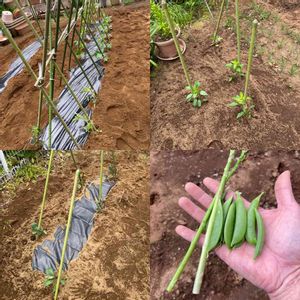 土日にできること色々やりました。 大豆が徒長してしまい、深く植えておきました。 いけるかな?虫とか心配です。 白ナスの苗を叔母からいただきました。 小さいからこれも心配、育ってね😃 プランターでもやりたくて、 ミニキュウリ先日の風でたおれたので、 植えなおしました。 復活してくれました。 斑点をなんとかしたいです (。>д<)