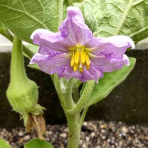 初めての白ナス。 花が咲きました。 どんなお味か楽しみ(๑˃̵ᴗ˂̵)