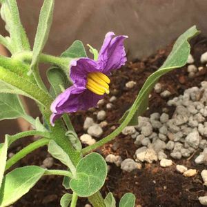 ナスのお花が咲きましたー💜🤗💕 ↖️日本ナス(ichiban)の花 ↗️白ナスの花 アリが一匹いたので もしやアブラムシが!😱と 老眼鏡かけて一枚一枚葉をチェック👀👓 アブラムシはいませんでした😊ホッ😌