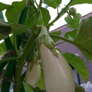 こんにちは(^^)/ 大雨の中、白ナスのお迎えに行ってきました✨ 今年初めて白ナスを植えたのですが、肥料不足からか短花柱花が多く落花が多いです😢 そんな中、真っ白なナスができて良かったです🍆