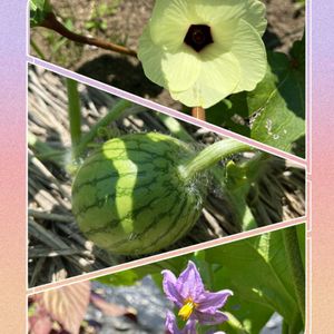 畑の野菜 オクラ 小玉スイカ 白ナス 少しずつ大きくなってきてる🥰👍 ナスは3日おき位に収穫❗️ とっても楽しみです😋 今日はニャンニャンの日❣️ 参加しまーす🤣💦 変顔と暑さでダラけたカロンです🐈⬛ 少し食欲が落ちて体重⬇️ でも元気です!