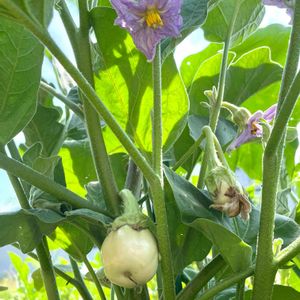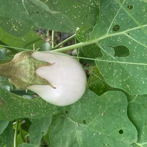 白いナスがなっているのを初めて見ました❣️食べたことないけど、どんな味なのかな?