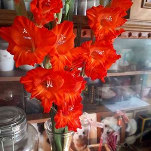 実家で娘(愛犬)の為に育ててもらってた 赤いグラジオラス。 母が咲いたからと持って来てくれたので仏前に。 赤は娘の夢紅のイメージカラー。