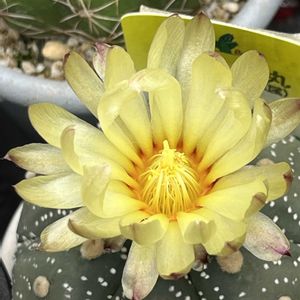 アストロフィツム 兜丸 咲いた(о´∀`о) 可愛い子💕 鉢パンパンになってきました 植え替えってどんなタイミングでします?