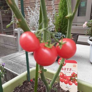 トメィトゥ初収穫⸜(* ॑꒳ ॑* )⸝ ピントが、、、w 楽しみーw