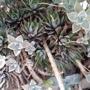 ハオルチア&サボテン達❓️🌵 ホームセンターの隅っこの見切り品コーナーで倒れて根っこむきだしのサボテン達の寄せ植え🌵まだ少しグラグラしてるけど元気になってくれるといいなぁ💚🎶 名前が書いていなかったので調べてみました。 左下:ハオルチア 十二の爪 真ん中の二つ:ヒボタン 右上:セレウス あってますか❓️❓️間違っていたら教えてください🌵😃 あと、他のサボテンの名前が分からないので御存知の方がいましたら教えてください☺️