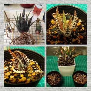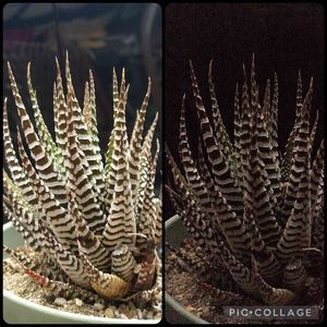 十二の巻の子株が大きくなってきた 右は以前外した子株 左はお母さん🪴 お母さんまた子供を増やしてくれた 白い模様は綺麗なんだけど、茶色くなってるところもあるし葉先が枯れてたりする 硬いハオルチアもぷくぷくのハオルチアも綺麗に育てるのむずかしい😙