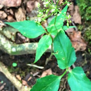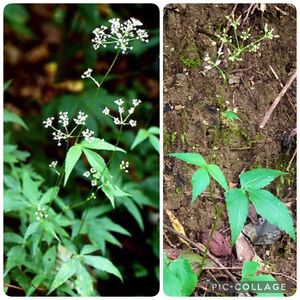 カノツメソウ 🌱セリ科 カノツメソウ属 ✽高さが30cm〜1mになる多年草 ✽無毛の茎は細いが中空で硬い ✽葉は薄く柄があり、上部の葉は1回、下部の葉は2回の3出複葉 ✽小葉は先が尾状にとがり鋸歯縁 ✽花はまばらな複散形花序につき、径約3mm、花弁と雄しべは5個 森の中でちっちゃな花が咲いてました🌱 周りは色々な葉っぱが多く、小さくても目立ってます☘️