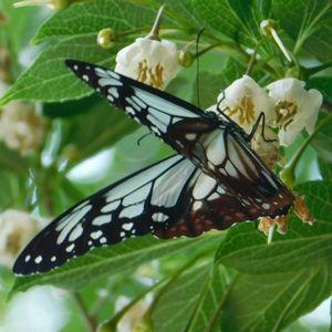 アサギマダラ エゴノキの花にて吸蜜 自宅すぐ近くエゴノキのオトシブミを撮影しようと木の下まで行きましたら なんと なんと アサギマダラが、、驚きました^^ 浅葱色の翅のなんとも美しいこと エゴノキの蜜を吸いながらクルクルと回りながら あちこちの花をに飛びながら 私の回りを遠巻きに飛んでくれて 雑木の山の向こう北の空へと飛びゆきました 三年ぶり三回目の出逢いです どうぞ帰りにも姿を見せてくださいね^^ 📸 6月2日 12時22分撮影 トリミングをほどこしました