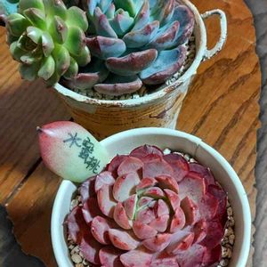 真っ赤なエケさんに一目惚れ💘して即買いしたシャーロットローズさん゚+.゚(´▽`人)゚+.゚この鮮明な赤がカメラやとなかなか出なくて残念💦 葉押しのオマケが付いてました🎵 奥のブルートパーズさんは2個目 色合いが良かったので再度購入(*´∀`)♪子株はチョンパしました オマケのオリビアさん立派な苗 やっぱり狙ったお肉getはウキウキ💖しますね🍀